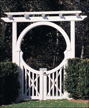 A front yard fence often has at least one gate. Here is where you can have a lot of fun with many different styles. Here's an example of a beautiful moon gate.